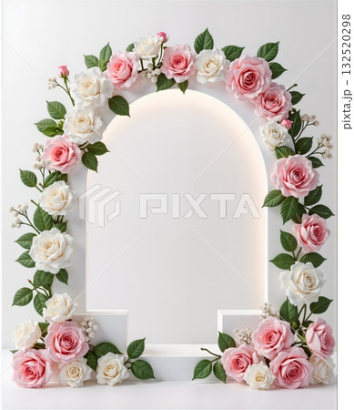 白色宮門產品展示架和粉紅玻璃,情人節,母親節,婦女節,生日,週年紀念,結婚,浪漫,廣播,公告,物料台