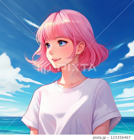 A girl with pink hair