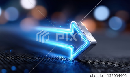 Dynamic metallic arrow with glowing blue light symbolizing future direction and technological progress