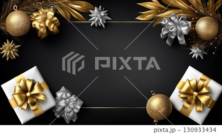 Elegant Christmas and New Year Holiday Background with Gold and Silver Decorations