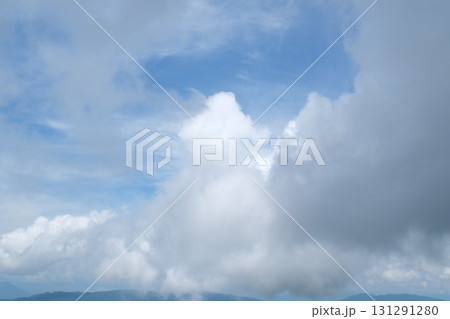 High nature view large white clouds on soft sky background in the morning, View of white cloudy on the plane.