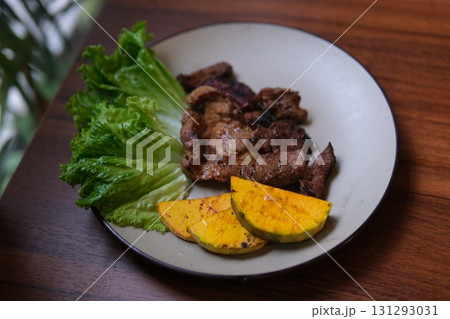 Japanese cuisine:"YAKINIKU" grilled meat on a grill