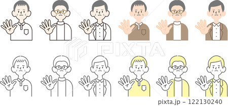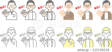 老年男性簡單插畫4張_憂心忡忡_拒絕(文②)