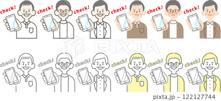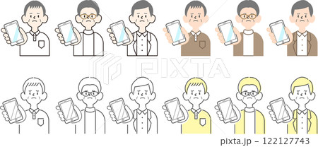 老年男性的簡單插圖4幅一組_煩惱的臉_智慧型手機(文字①)