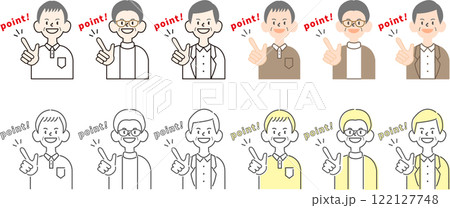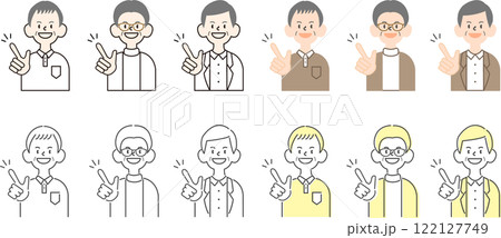 簡單老人插畫4種圖案一套_微笑_檢查(文字①)