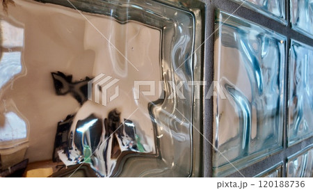 Textured Glass Blocks Creating a Distorted Indoor Reflection