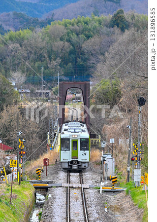 秩父鐵道出507次貨運列車行駛在新綠色之中