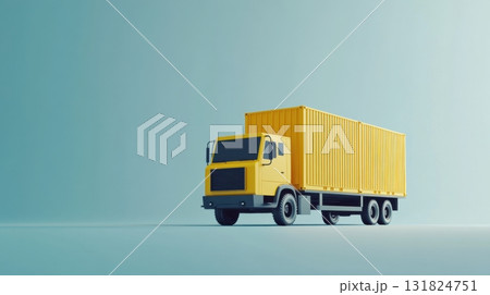 Yellow truck with shipping container against a minimalist background