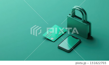 Security measures for online transactions featuring a smartphone, credit card, and lock on a green background