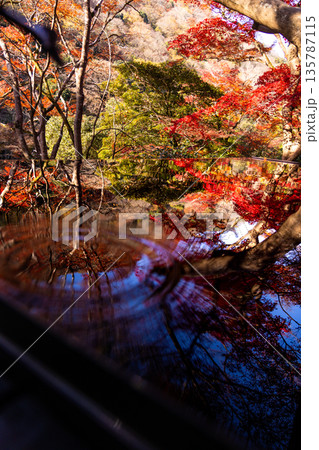 秋葉和森林倒映在水面上