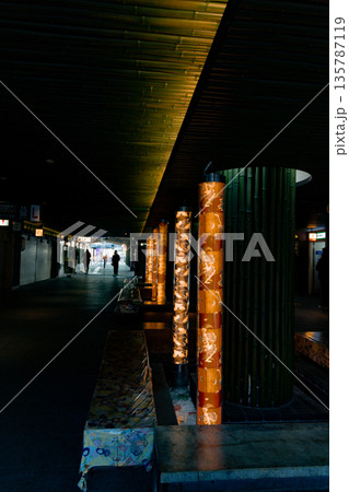 日式燈光靜靜地排列著。