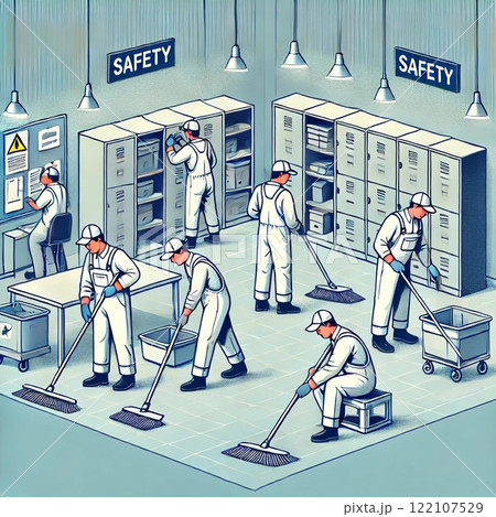 員工在工廠打掃