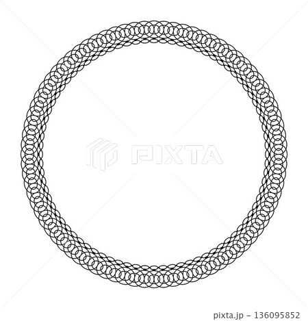 Circular pattern. Black and white circular frame, repeating symmetrical arabesque and floral motifs, creating a detailed mandala-like border design.