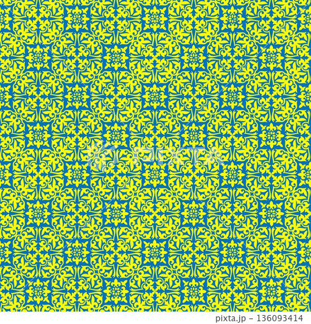 Seamless pattern tile with decorative ornament. Geometric Seamless Pattern Arabesque blue, yellow. Beautiful background for fashion prints or wrapping paper, Mediterranean ceramic, patchwork, tile