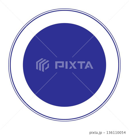 Simple graphic featuring a bold blue circle bordered by two thin blue rings against a white background. Abstract circular logo or seal design element. Vector illustration. Eps 10.