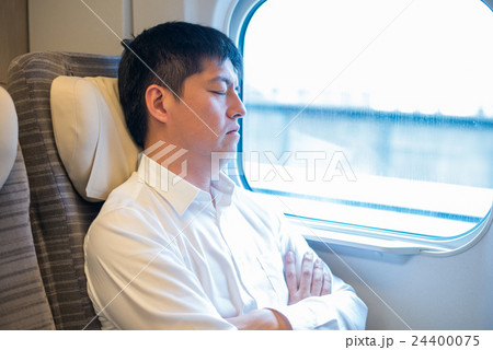 睡覺在高速火車的火車的一個人