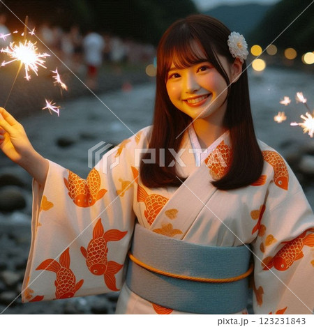微笑的女人拿著煙火