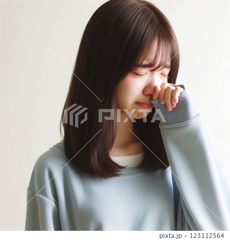 哭泣的女人用手擦眼淚