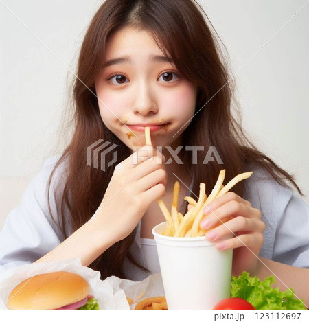 吃垃圾食物的年輕女人