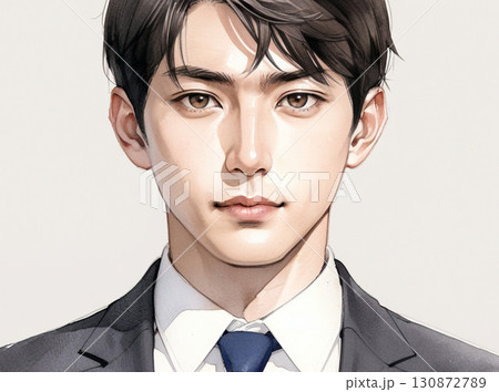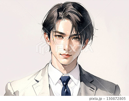 水彩風格插畫|充滿柔和氣息的青年男子(斜正面照、淺色頭髮)