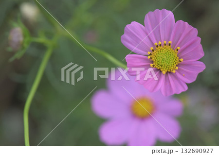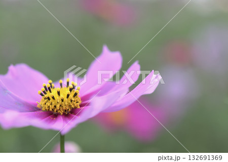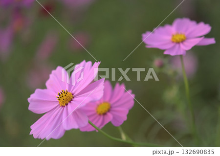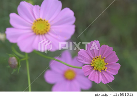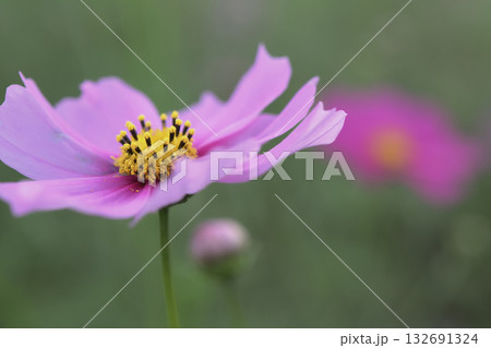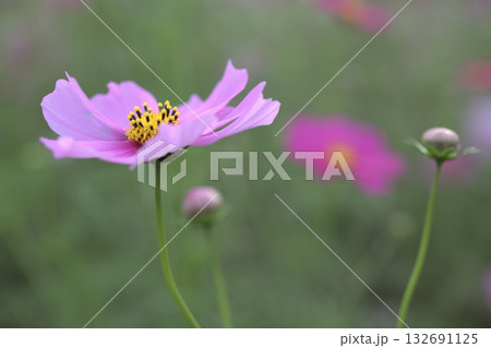 五彩繽紛的波斯菊地中盛開著粉紅色的花朵