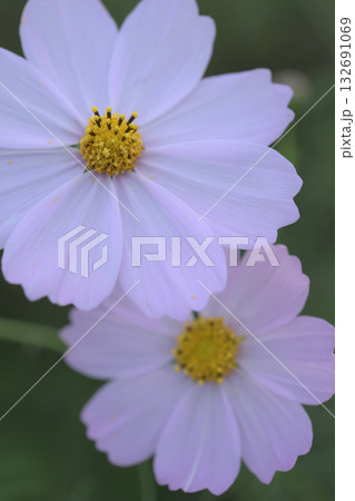 盛開在波斯菊田裡的白色波斯菊 橙色波斯菊