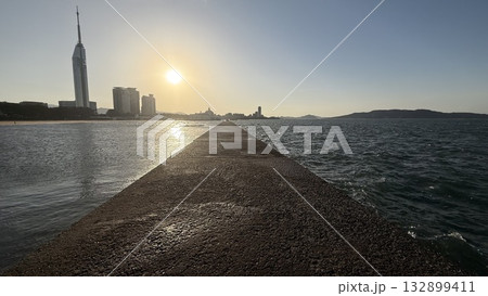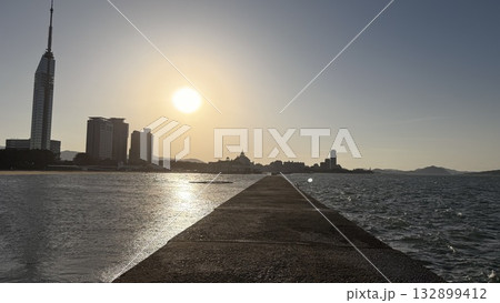 桃地濱寧靜的水域和福岡塔 | 秋季主題的福岡市海岸風光