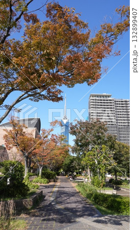 秋意漸濃-福岡塔與五彩斑斕的銀杏樹 1