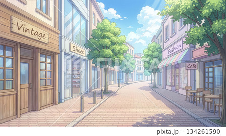 夏日的天空和蜿蜒街道兩旁林立的服飾店