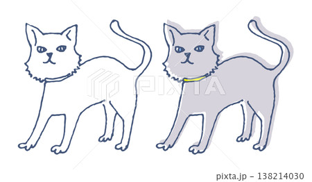 可愛的貓咪線條畫和純色插畫套裝 | 簡約手繪風格貓咪素材
