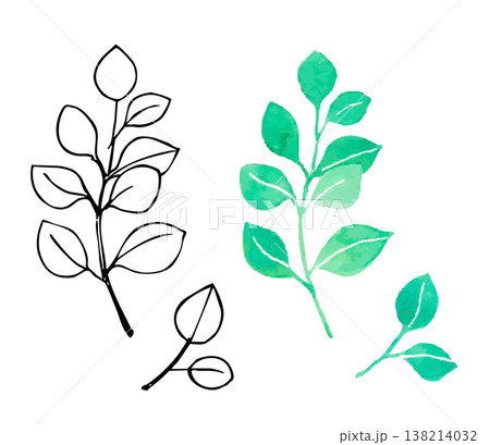 尤加利葉線條水彩畫套裝 - 天然植物材料