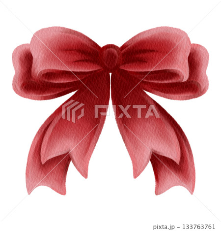 Red and White Striped Christmas Bow Watercolor Illustration Isolated On White