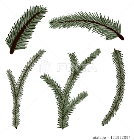 Watercolor Illustration of Pine Tree Branches Isolated on White Background