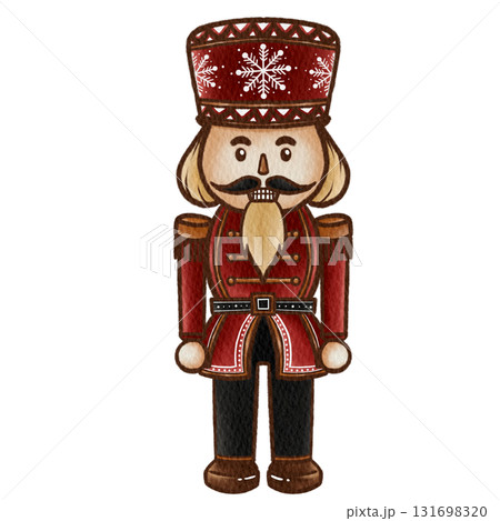 Watercolor Nutcracker Soldier in Red Uniform with Snowflake Hat Illustration