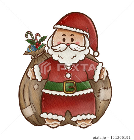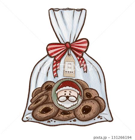 Watercolor Christmas Cookie Bag Santa Gift Illustration