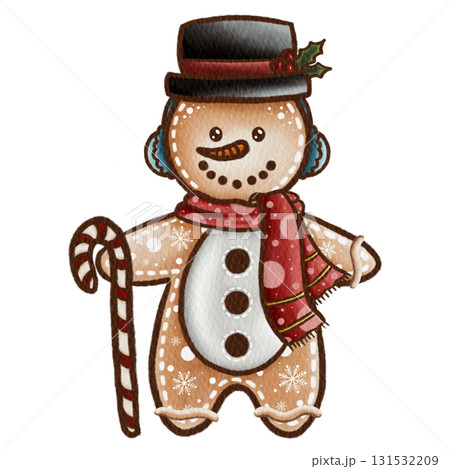 Gingerbread Snowman Cookie Watercolor Illustration Isolated On White
