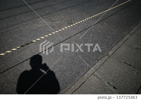 一條繩子劃定了禁區,繩子上還有一個人的影子。