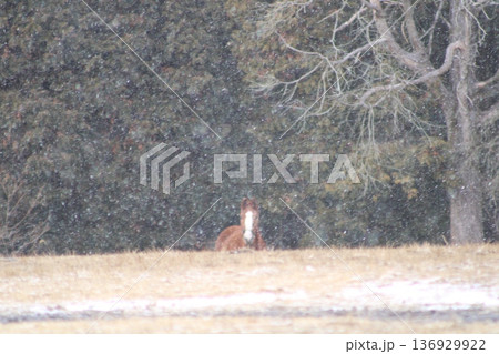 馬兒在雪地裡嬉戲
