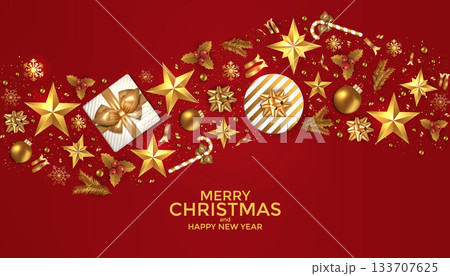Holiday New year card - Merry Christmas on red background 3
