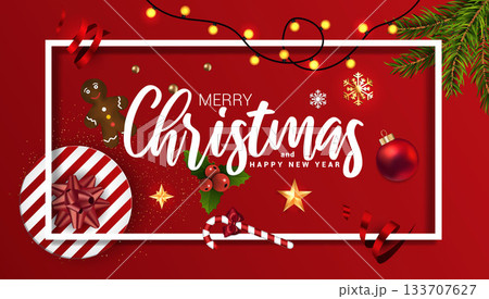 Holiday New year card - Merry Christmas on red background