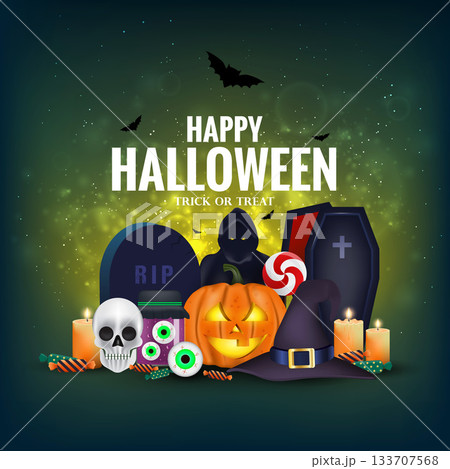Halloween night background with pumpkin and full moon