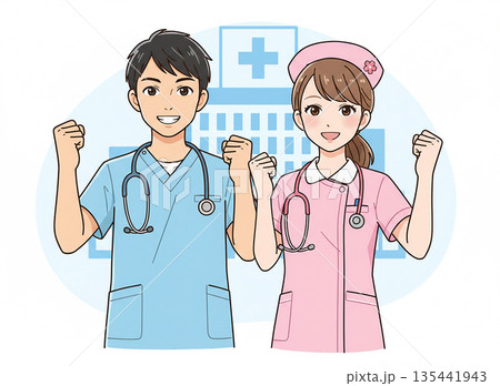 年輕男女護士插畫 02