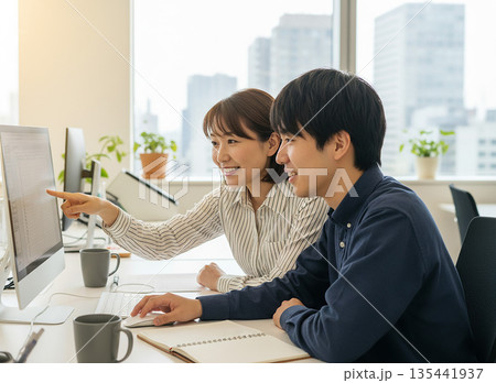 男子接受電腦操作指導的插圖 02