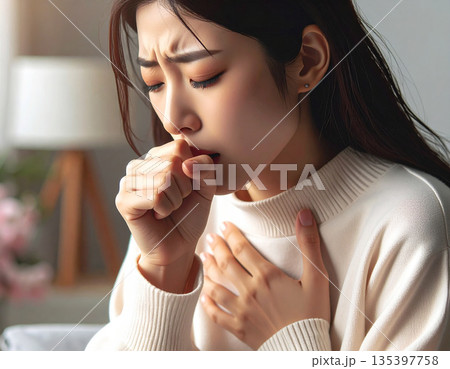 一位咳嗽且看起來很痛苦的女士