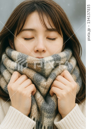 寒冷的冬日圍巾,美麗的女孩,美麗的女人
