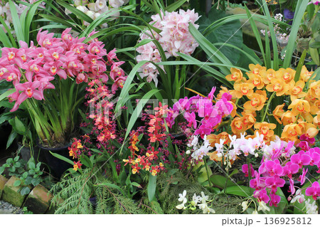 一個美麗的花園,裡面盛開著五彩繽紛的蘭花。