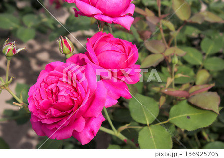 花園裡盛開著鮮豔的粉紅玫瑰