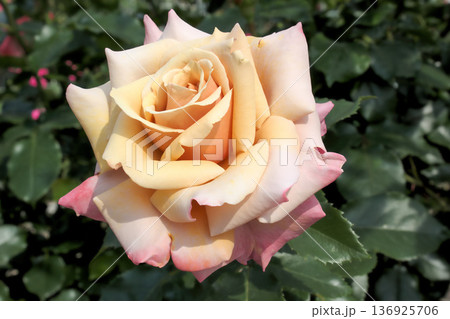 一朵優雅的單顆玫瑰,呈現淡杏色