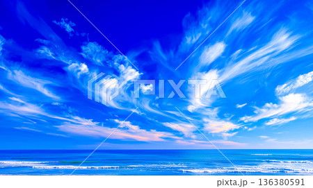 平靜的海景,藍天白雲,陽光照耀著地平線,令人心曠神怡。