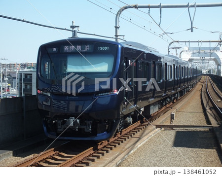 一列由東武鐵道10030系和10000系列車組成的8節車廂的列車(在新田站拍攝)